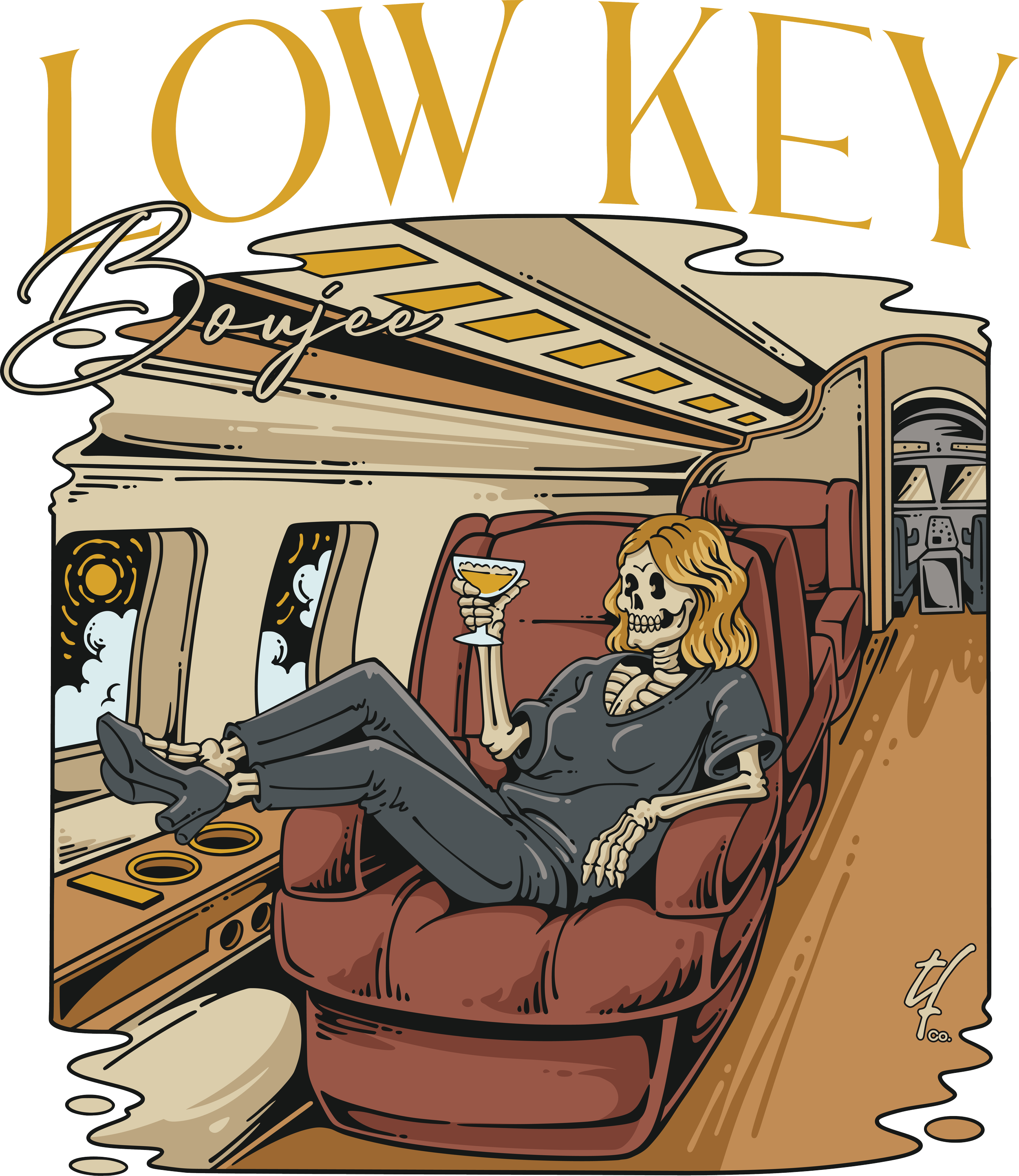 You don’t need logos the size of a winglet to prove anything. This one’s for the quiet flexers—the people who fly private, drink well, and never feel the need to explain themselves. “Low Key Boujee” says exactly enough without saying too much. Effortless. Unbothered. Probably late… but on a jet.